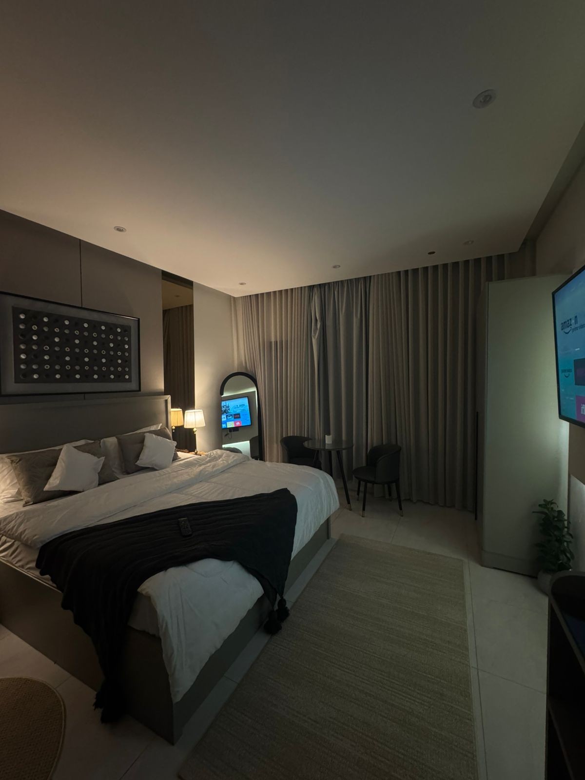الوحده السكنية تقع فى منطقة هادئة وموقع مميز حي العقيق استديو غرفة نوم مع دورة مياه