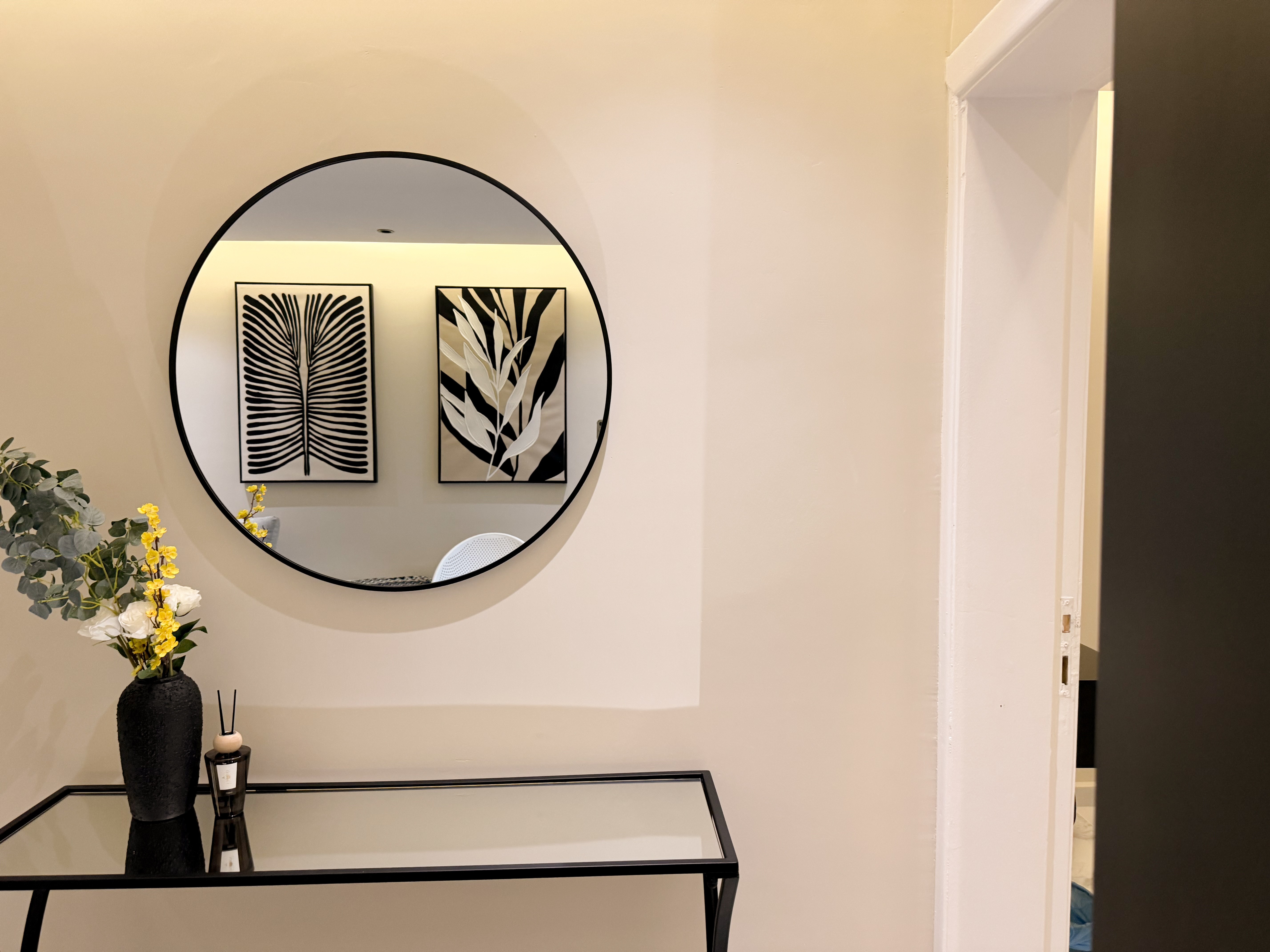 الوحده تتكون من غرفة نوم وصالة بشاشة حجم ٦٥ وجلسة خارجية مع مطبخ