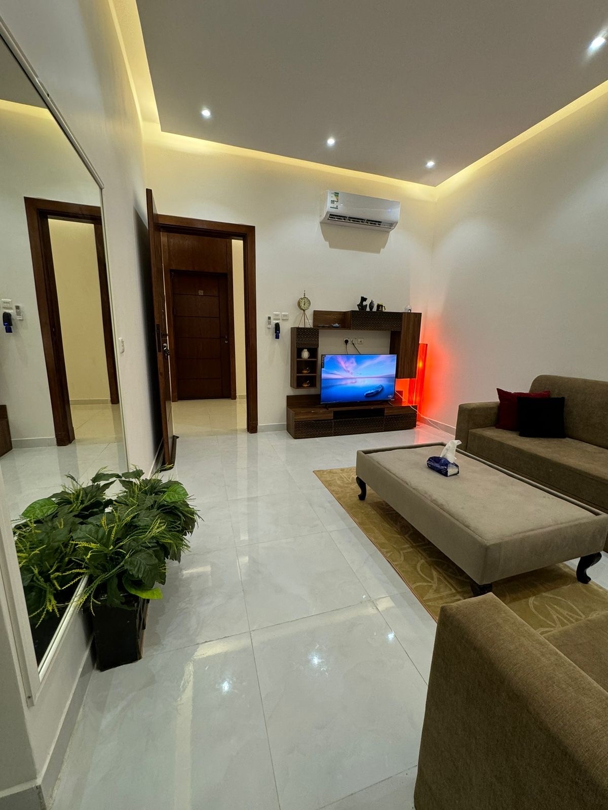 الوحده السكنية تقع فى منطقة هادئة جميع الخدمات متوفره نت مجاني شاشه سمارت اشتراك نتفلكس وشاهد مجاني اضئات خافته مجهزه غرفة النوم من جميع وسائل الراحه فراش فندقي مع لباد فندقي +اضئات مرتبه ونضيفه وقريب منها جميع الخدمات مجهزه من عازل لصوت كامله