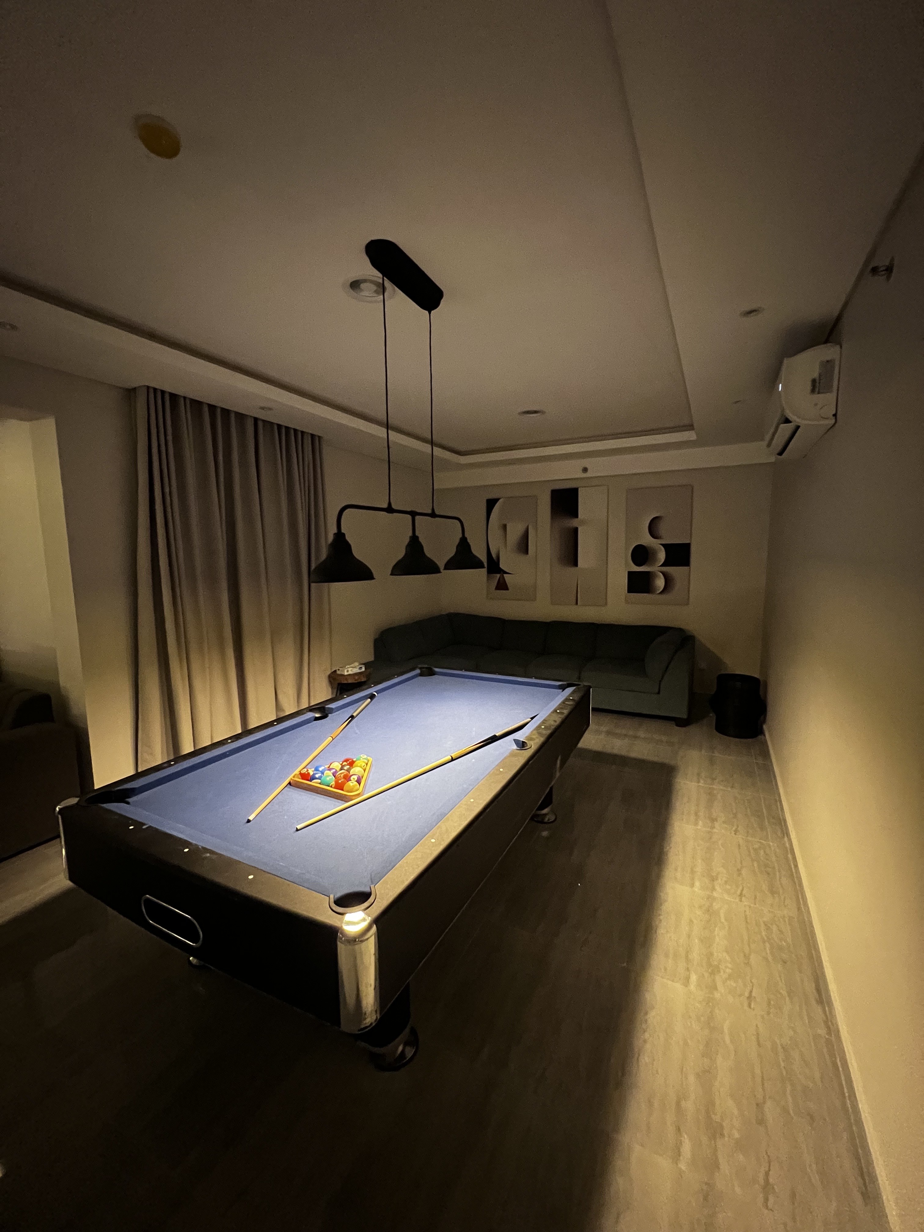 شقة واسعة وفاخرة في كمباوند في حي حطين - دقيقتين عن البوليفارد - مكونة من ٣ غرف نوم - وحدة ماستر وثنين منها كنق بد مع تلفزيون - واحدة سريرين منفصلة - طاولة بلياردو - صالة واسعة - مطبخ.