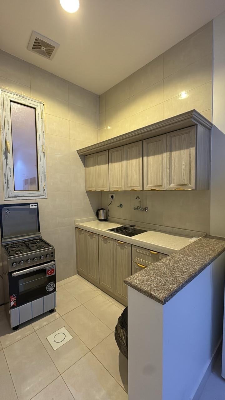 الشقة تتكون من غرفة وصالة وغرفة نوم وحمام