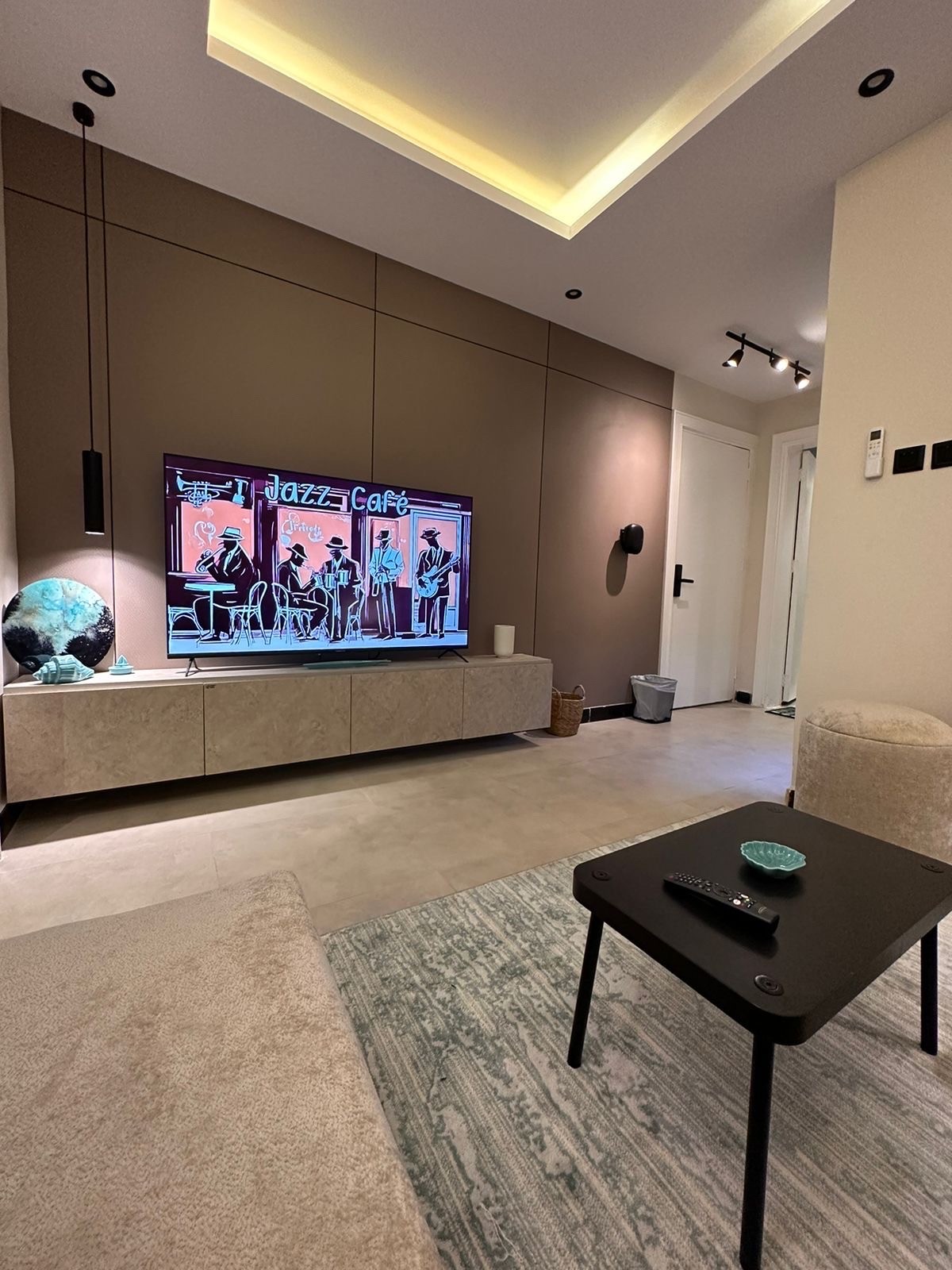 شقه انيقه حيث تتميز بتلفزيون ذكي 65 بوصه ، والانترنت المجاني ، القرب من مدينه الملك عبدالله الماليه وفعاليات موسم الرياض .. وكذلك قرب محطه القطار